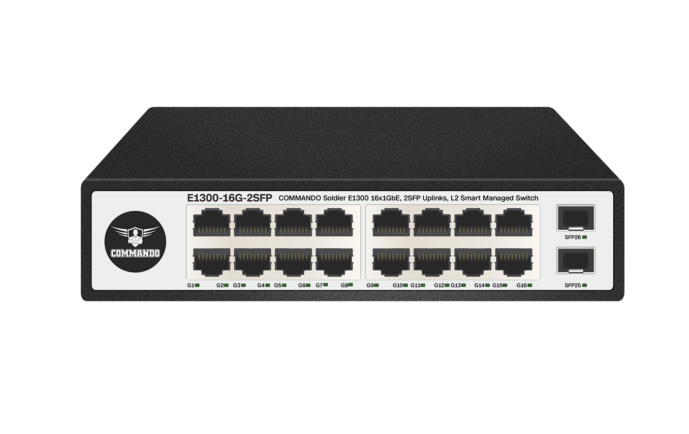 COMMANDO Soldier E1300 16x1GbE, 2SFP Uplinks, L2 Smart Managed Switch