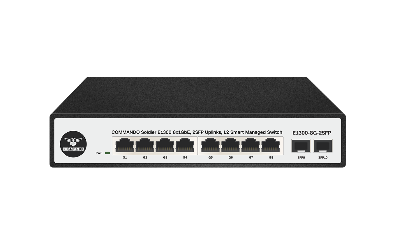 COMMANDO Soldier E1300 8x1GbE, 2SFP Uplinks, L2 Smart Managed Switch
