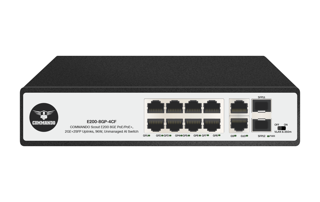 - Break free from traditional 100-meter Ethernet limits. With AI 250M mode, extend PoE transmission distances up to 250 meters—perfect for powering remote IP cameras, outdoor access points, and devices across large campuses or factories.