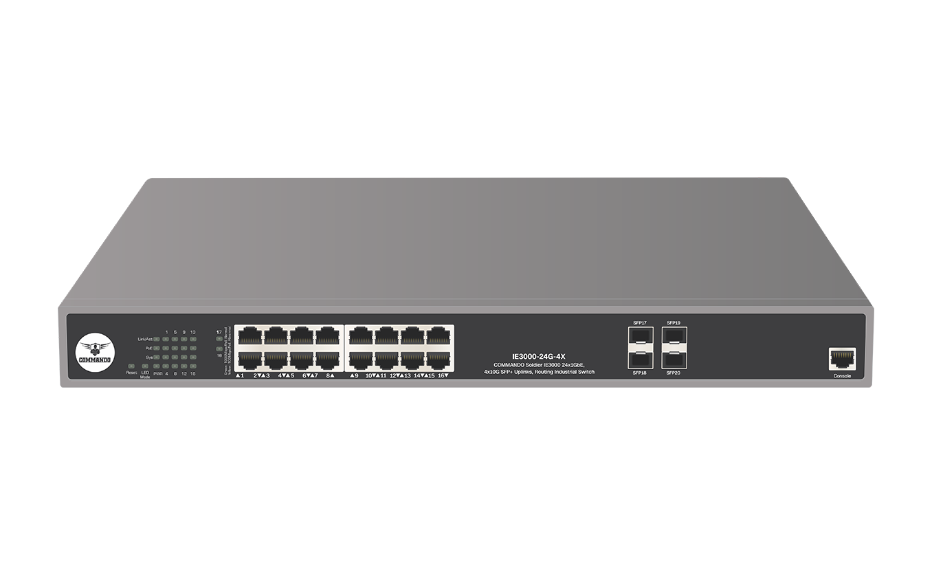 COMMANDO Soldier IE3000 24x1GbE, 4x10G SFP+ Uplinks, Routing Industrial Switch