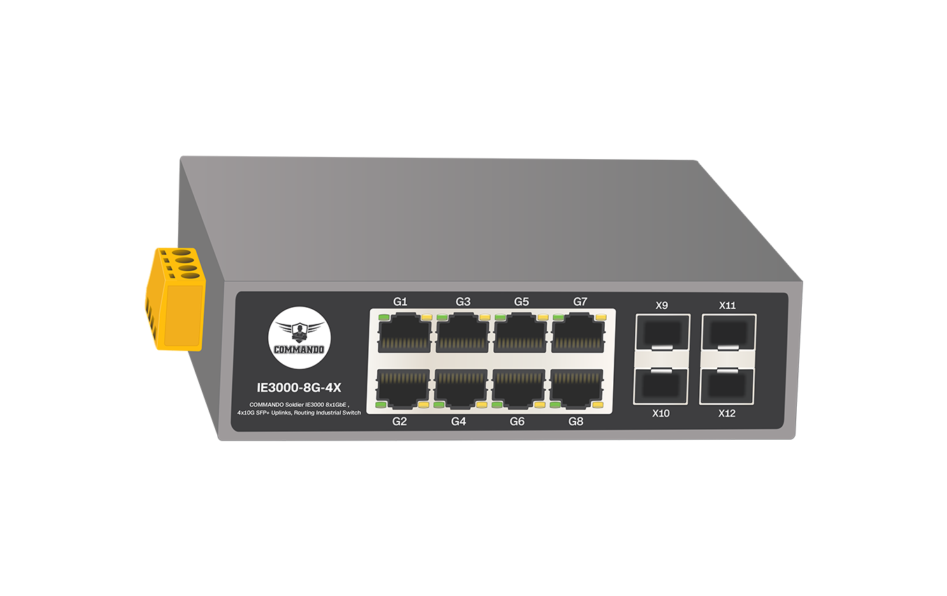 COMMANDO Soldier IE3000 8x1GbE , 4x10G SFP+ Uplinks, Routing Industrial Switch